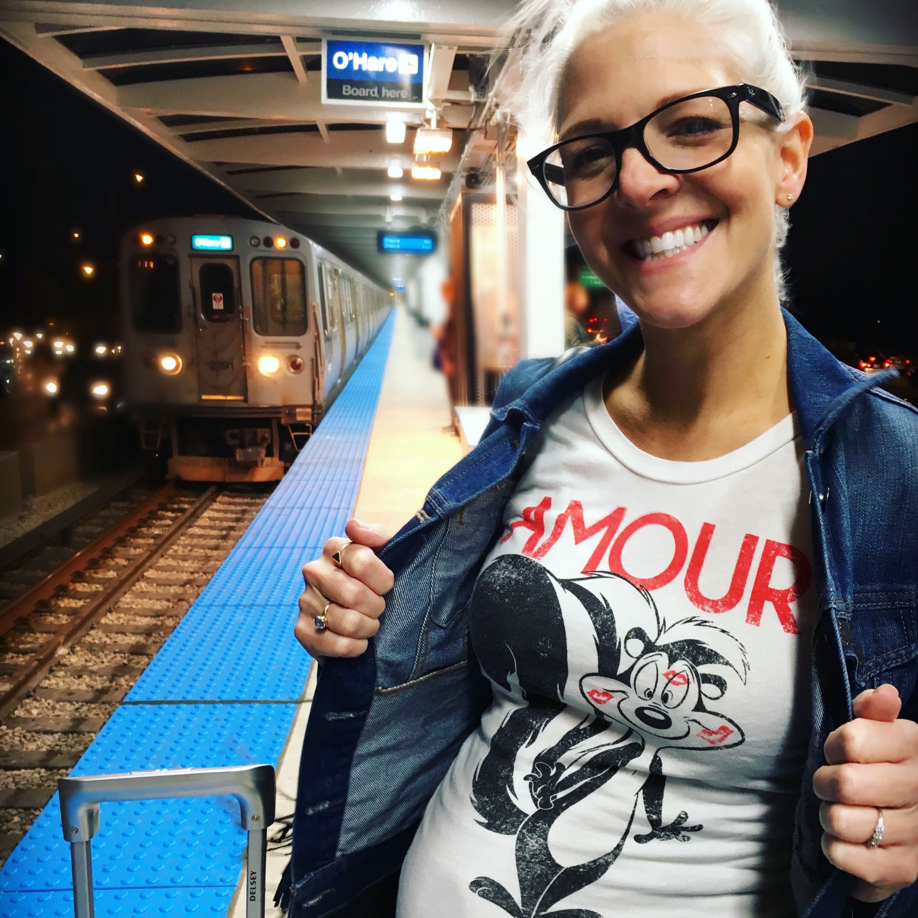 iday was kind of a bust – we arrived late. However, I wore head to toe thrift to travel: grey maxi skirt, pepe le pew tee (or as I call it my wedding tee), denim jacket, and oversized fringe purse perfect for stowing all my snacks.