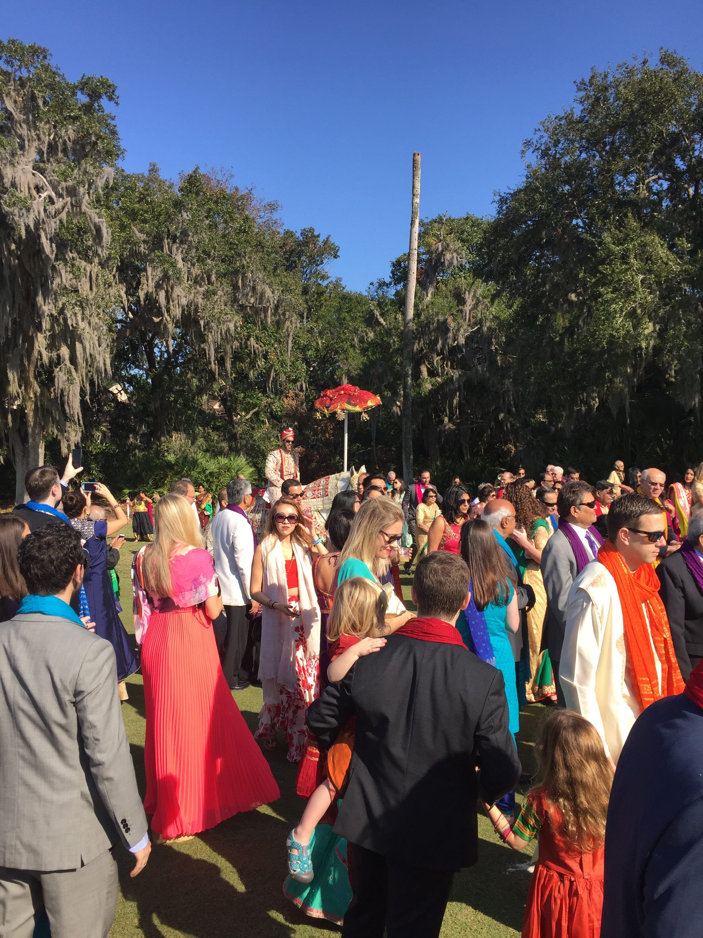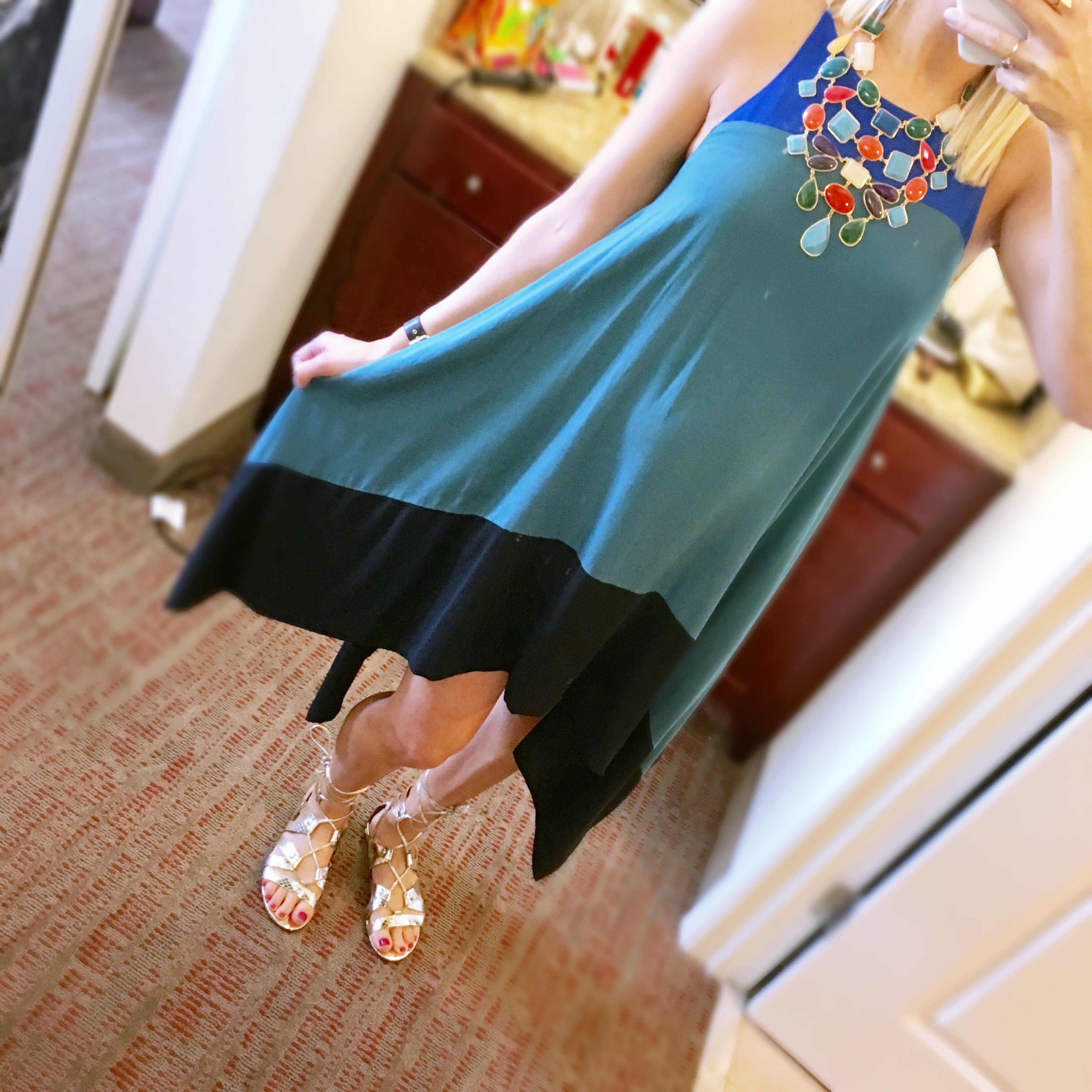 Saturday started early (10am!), but the lively celebration woke me right up. Sadly I couldn’t find a sari to fit over my growing bump, so I opted for a color block trapeze dress and glittery scarf. I pumped up the fun with a colorful necklace and bright gold lace up flats which were key as we danced (literally) down a golf course to pick up the bride. Total cost: $8. NO JOKE. I purchased the flats from Banana Republic using a gift card. The necklace was a THS donation from a friend. The dress set me back a whopping $6, and the scarf was $2! I could tell you that this was a the cheapest outfit I ever wore, but that would be a lie 🙂