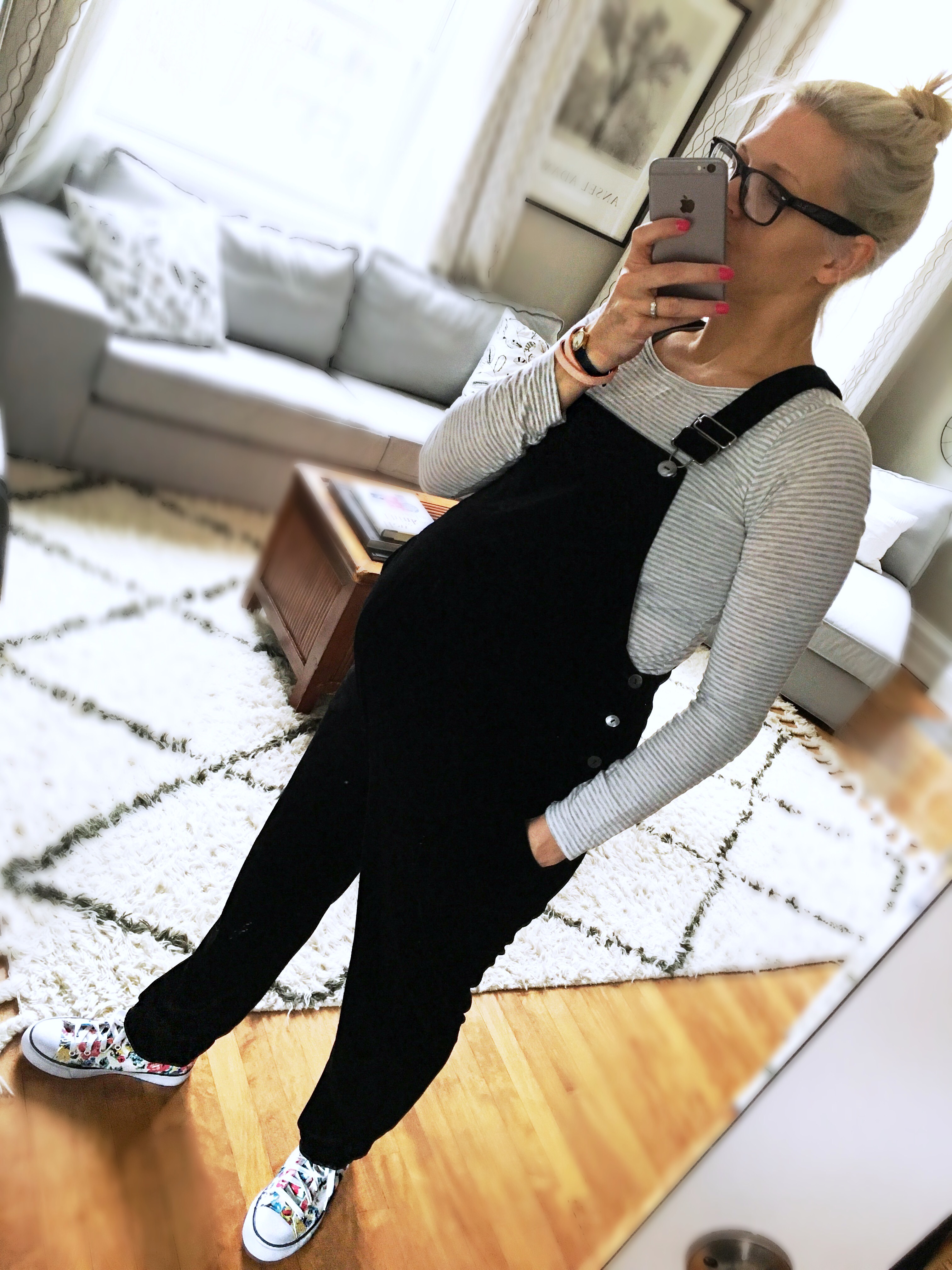 I hunted these overalls over a year ago, and I just so happen to be the perfect size to wear them today. When I slipped them on, I instantly felt like it was going to be a good day. I mean overalls are pretty quirky for someone over the age of 5, and this pair is VELVET. I’m obsessed. I paired them with some equally cheery, new to me floral high tops and a super soft long sleeve tee. Head to toe thrift for under 20.