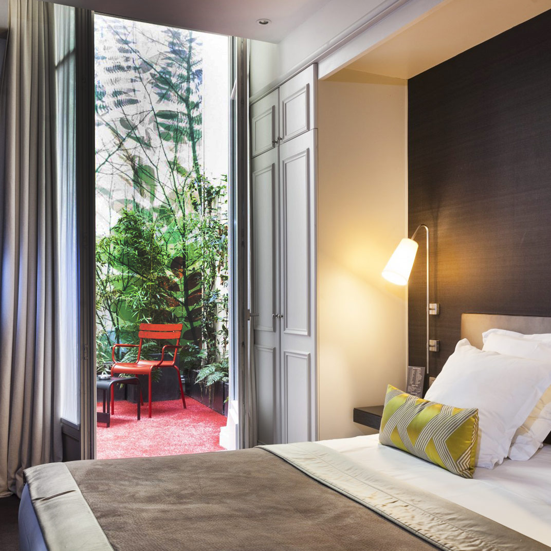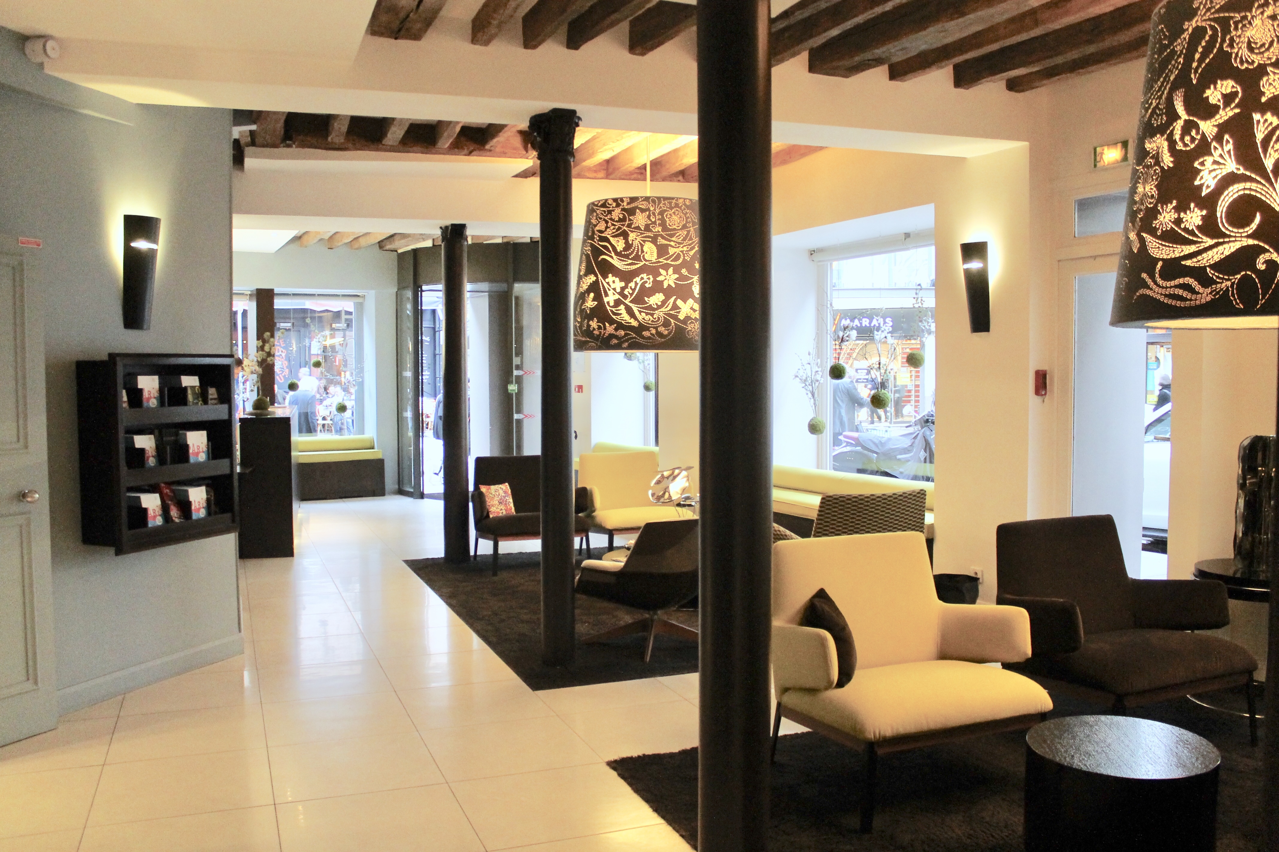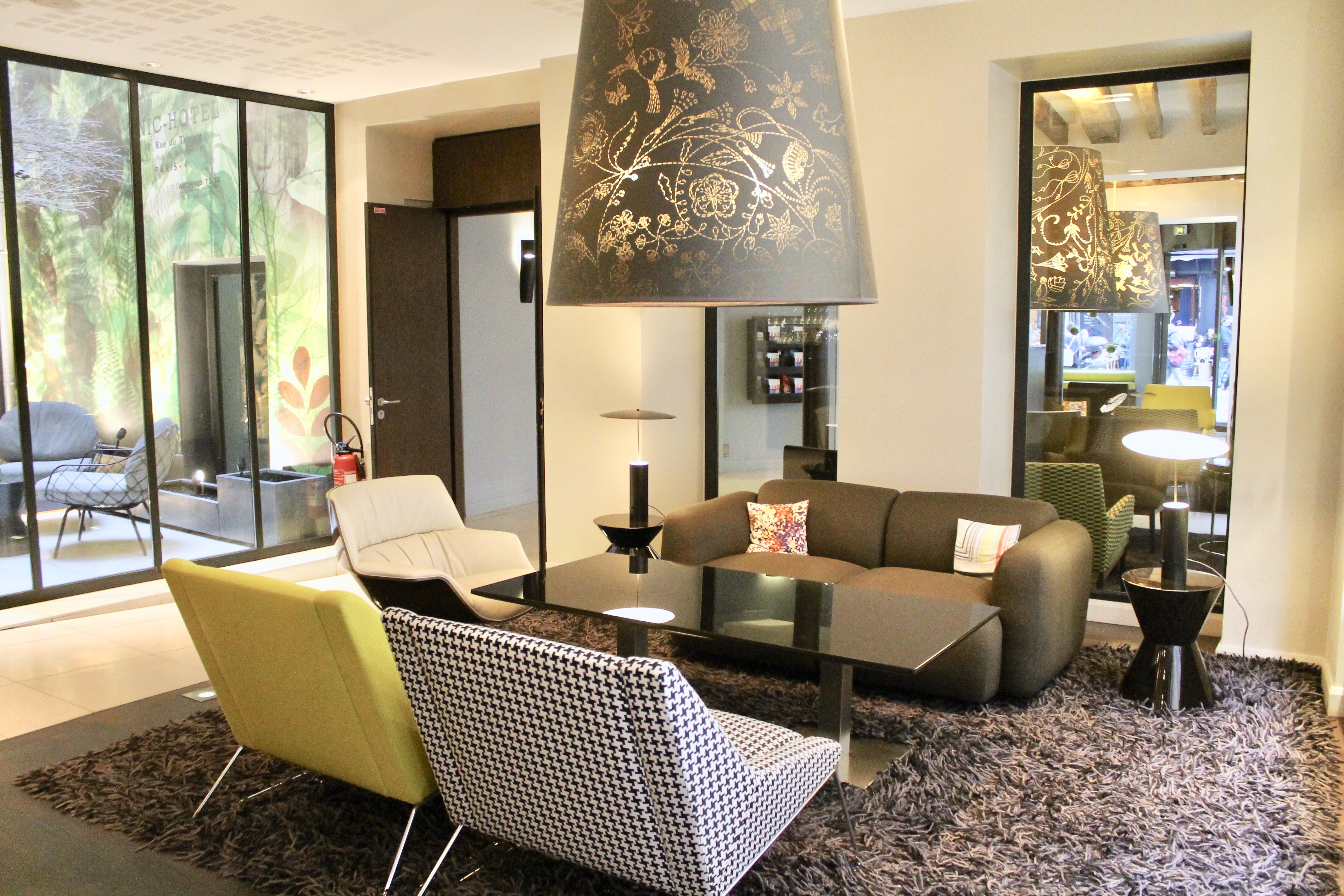 We stayed at Hotel Duo, a modern boutique-style hotel, based off the recommendation of one my b-fries from college. She frequents Paris for work, and this hotel caught her eye during her last visit. The decor of this hotel was chic and playful. Old beams are mixed with clean lines and modern furniture. There are oversized drum lights and an atrium adding drama without being too serious. We loved it.