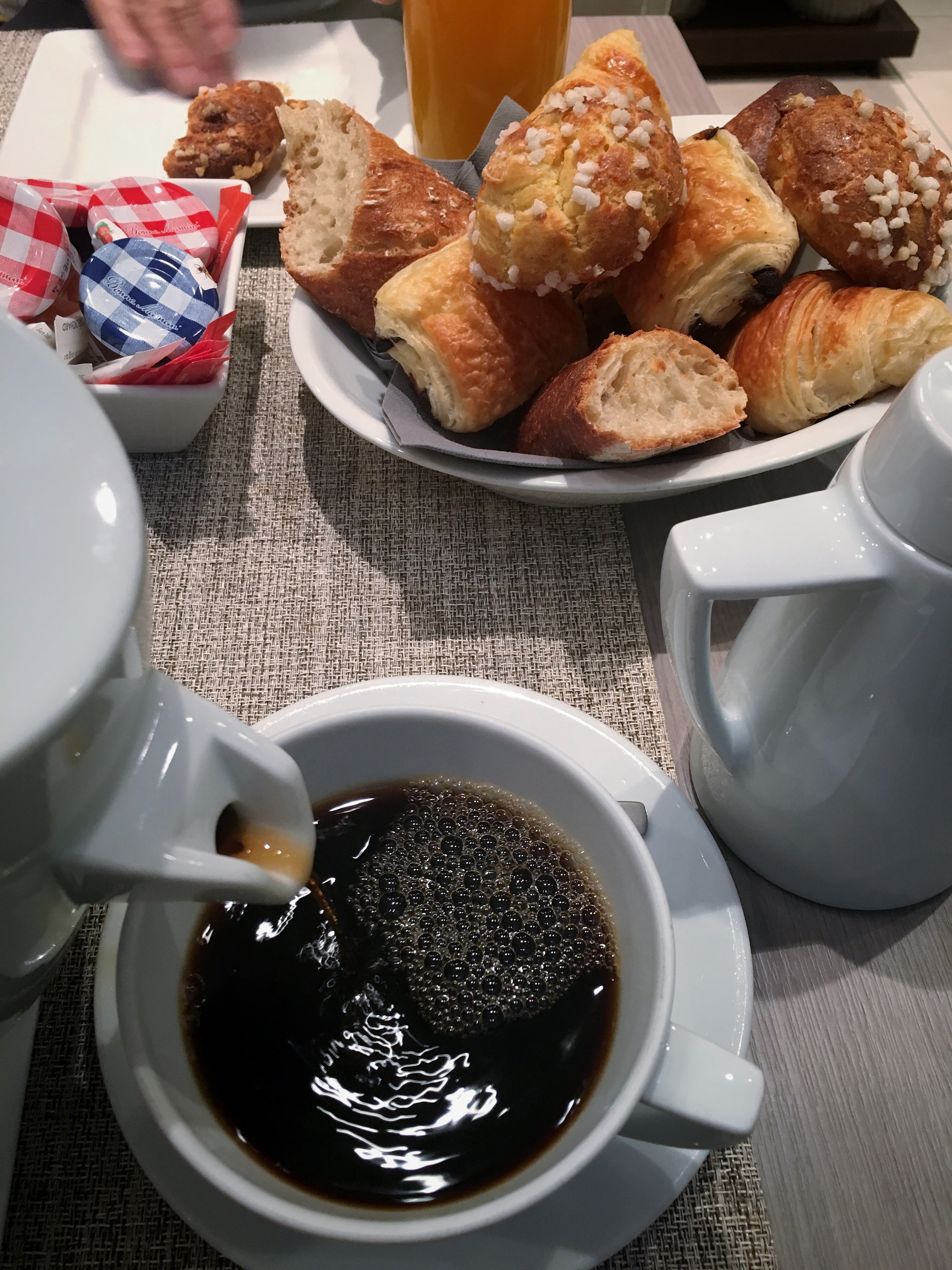 We opted for a quick breakfast at the hotel – strong but smooth ‘American’ coffee, and a basket of divine pastries that were light, fluffy, and just barely sweet. I also ate a yogurt for protein, and it was so much better than any American yogurt I’ve tasted that I was a little peeved.