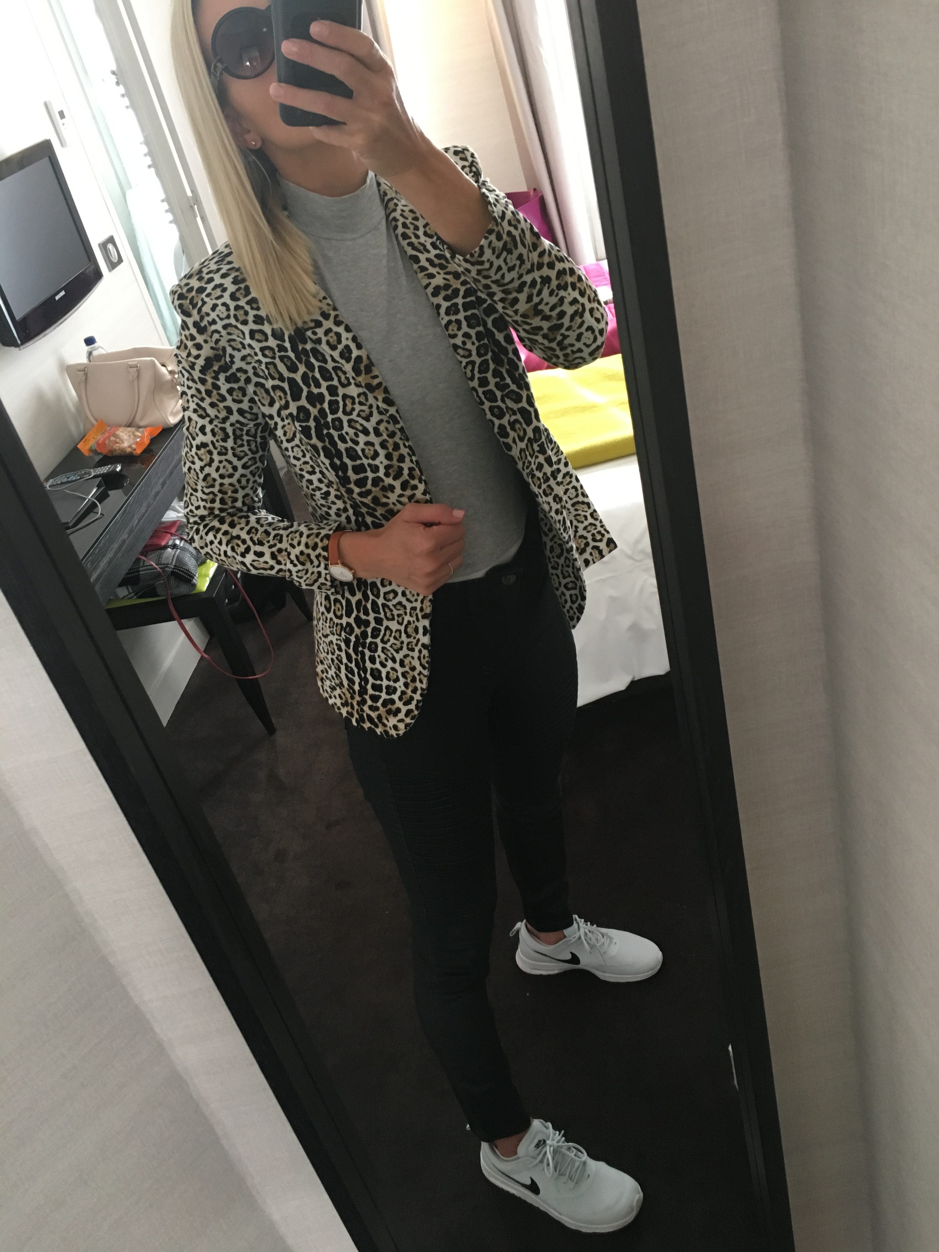 I got dressed in a fully thrifted outfit fit for exploring – Akira wax jeans, Gap grey mock turtle neck, Zara animal print blazer, no brand round sunnies, and Air Max Thea Nikes (purchased new just before the trip).