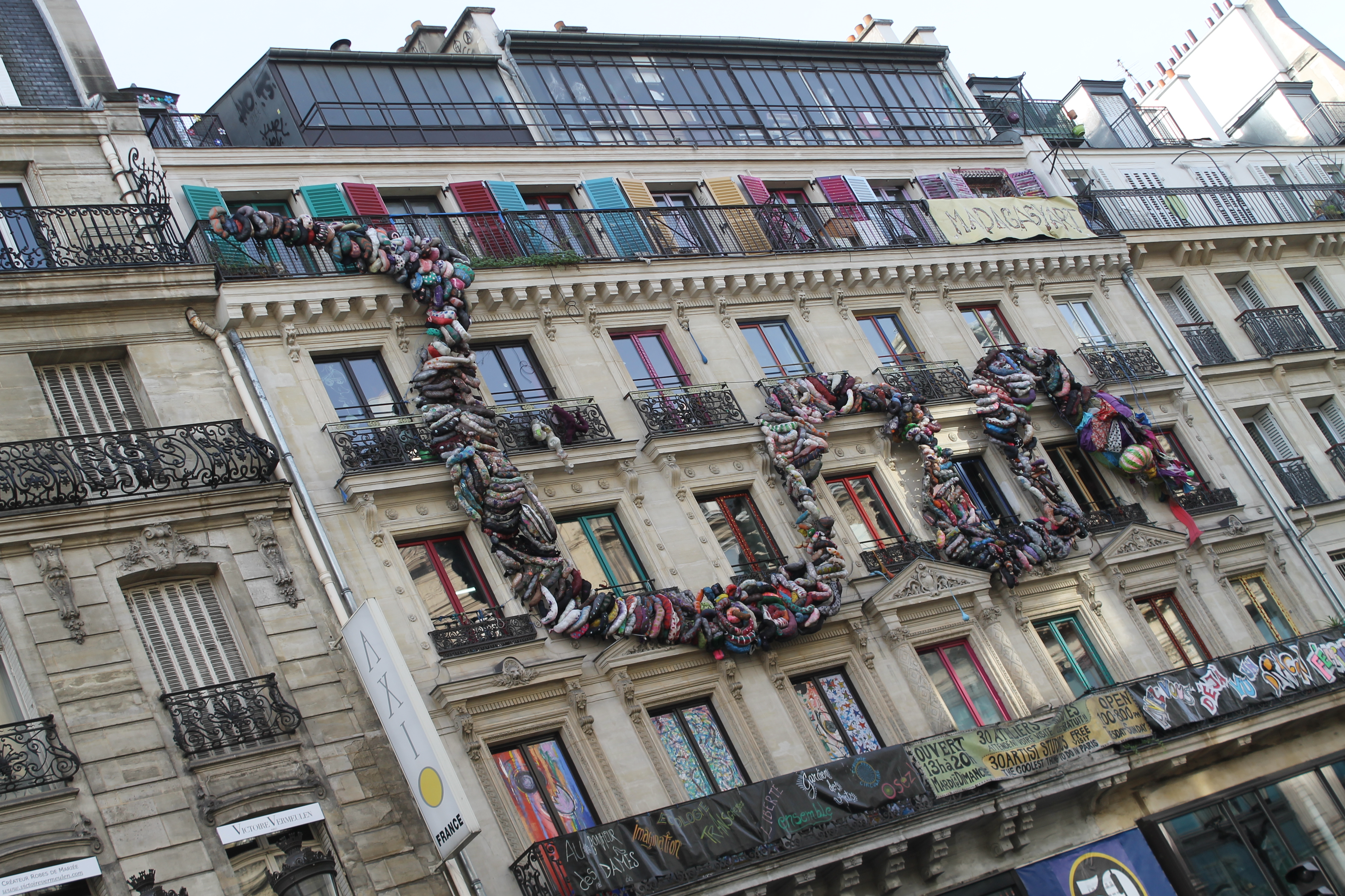 I didn’t stay annoyed for long, because today was Lourve day! We headed off in that direction on foot doing some window shopping and sight seeing along the way. Being November, we drooled over cozy chic displays and admired a giant building caterpillar made from sweaters.