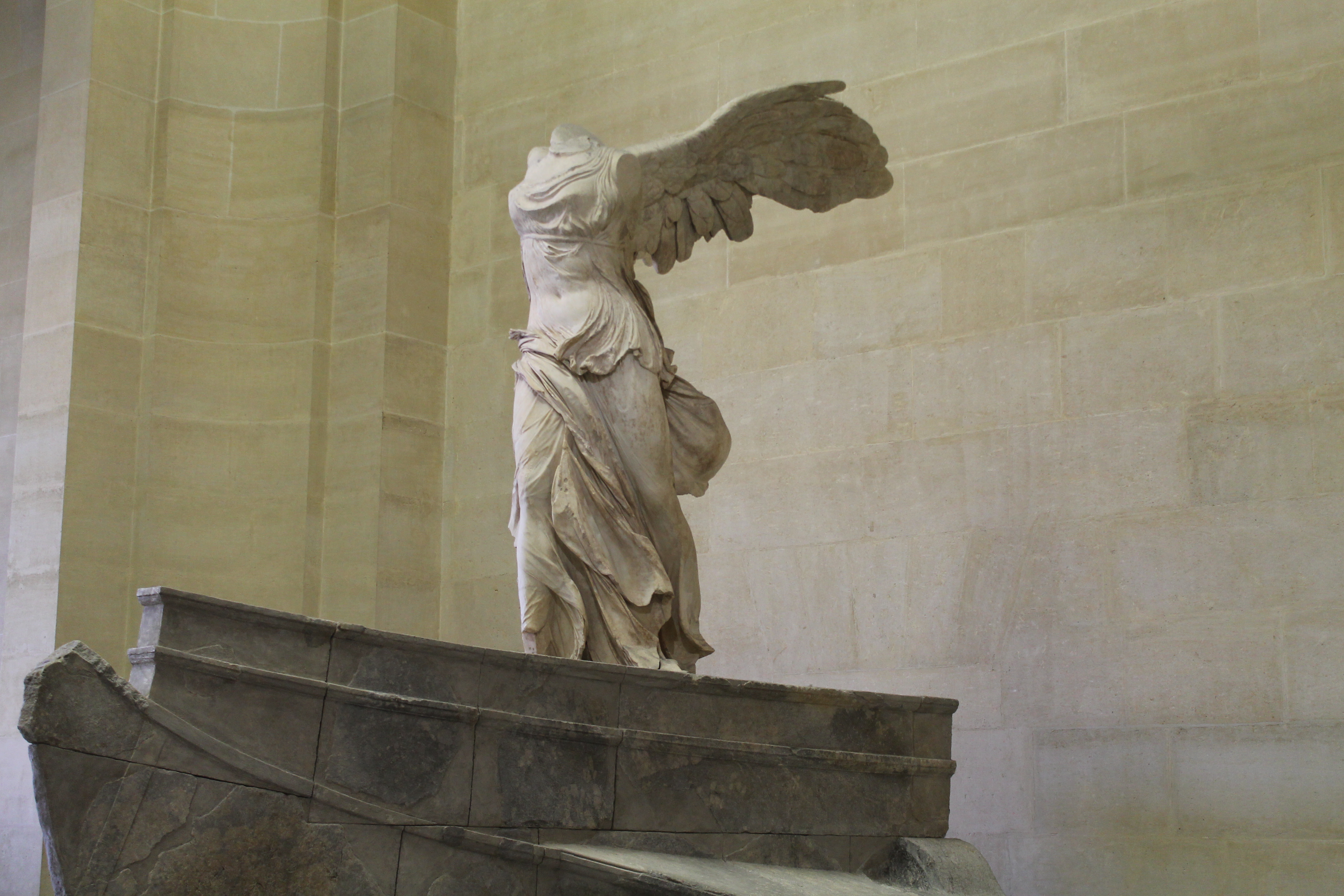 My favorite piece of the day was Winged Victory of Samothrace. At the top of a staircase, perched on a bow, carved out of marble, stands this Hellenistic sculpture of Nike, the Greek goddess of victory.She quite literally took my breath away. The drapery of her dress for which she is so famous seems to be flowing in the wind. She is triumphant, strong, and beautiful even without a head.