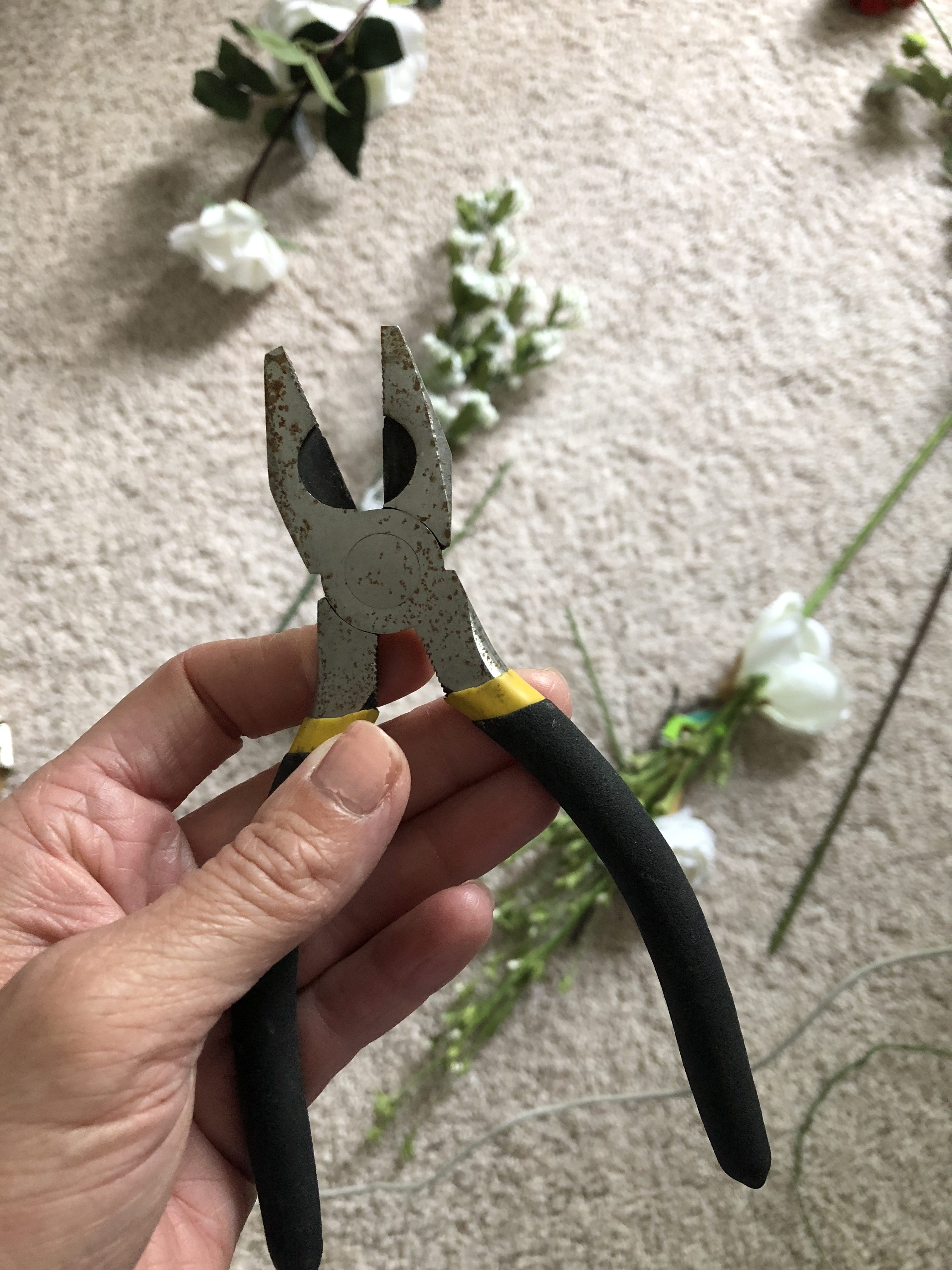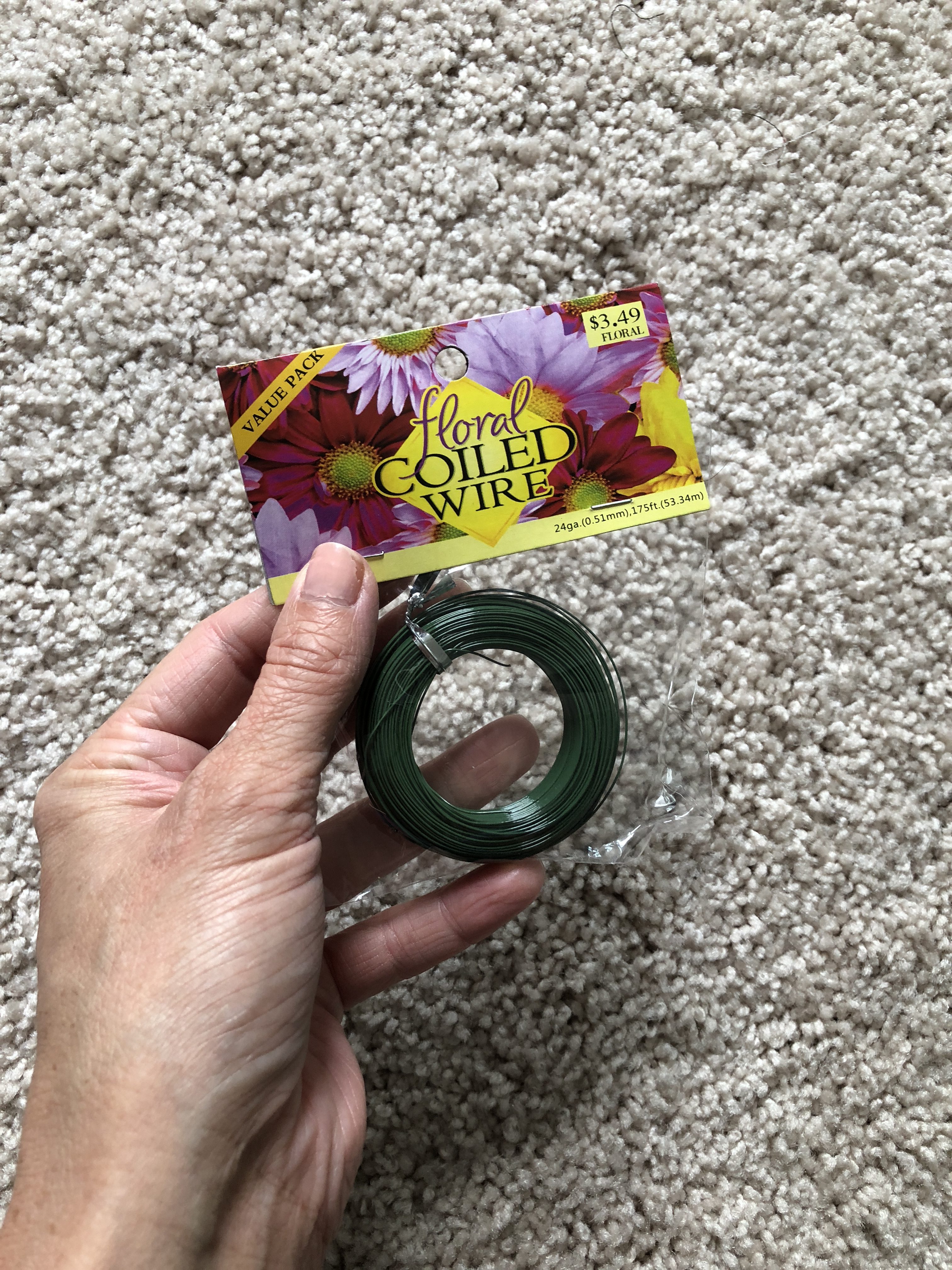 - Floral coiled wire – This is thin and very flexible. Use this to attach the flowers to the base.