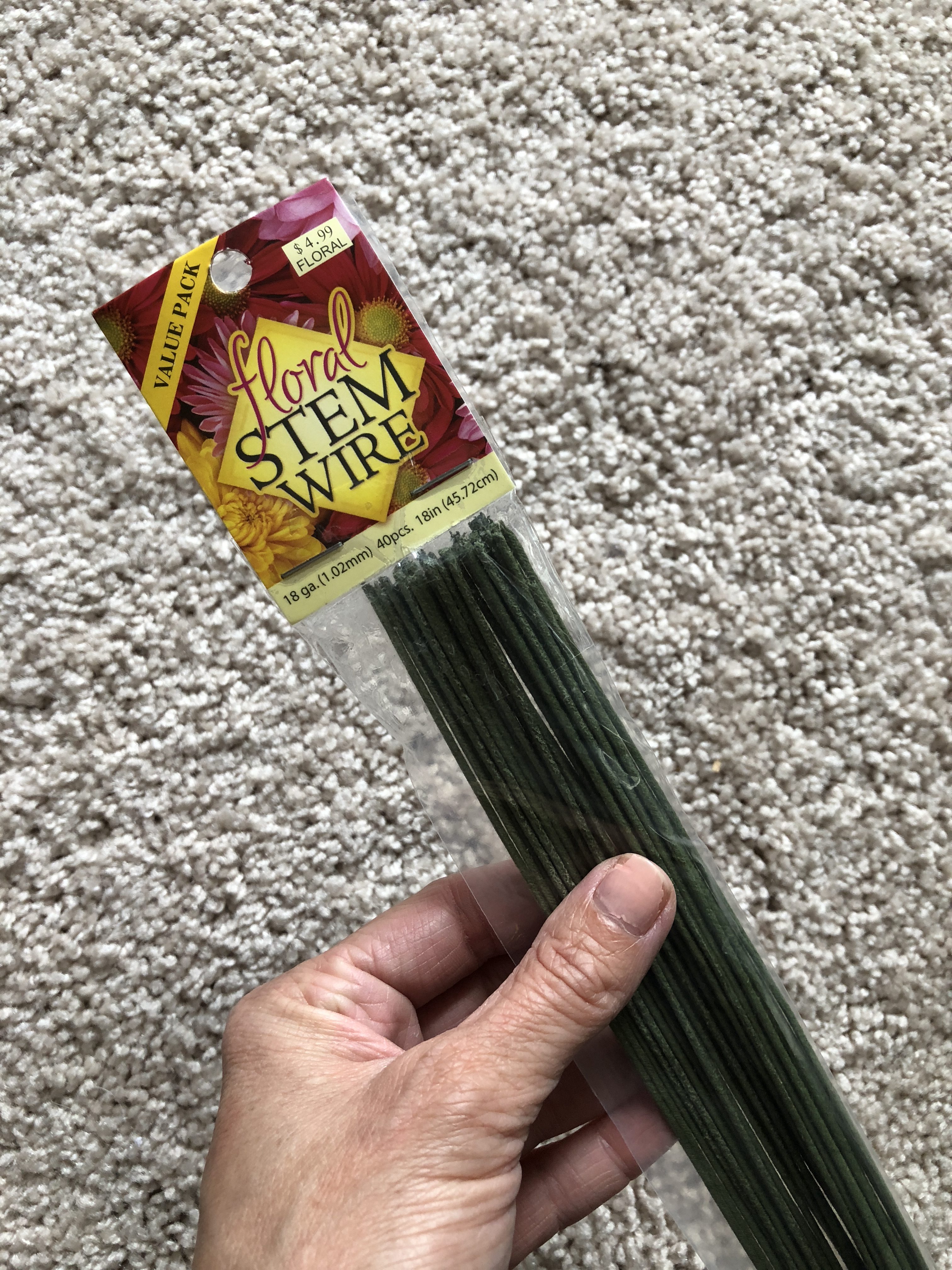 - Floral stem wire – This is thick and somewhat flexible. Use this to make the base of the crown.