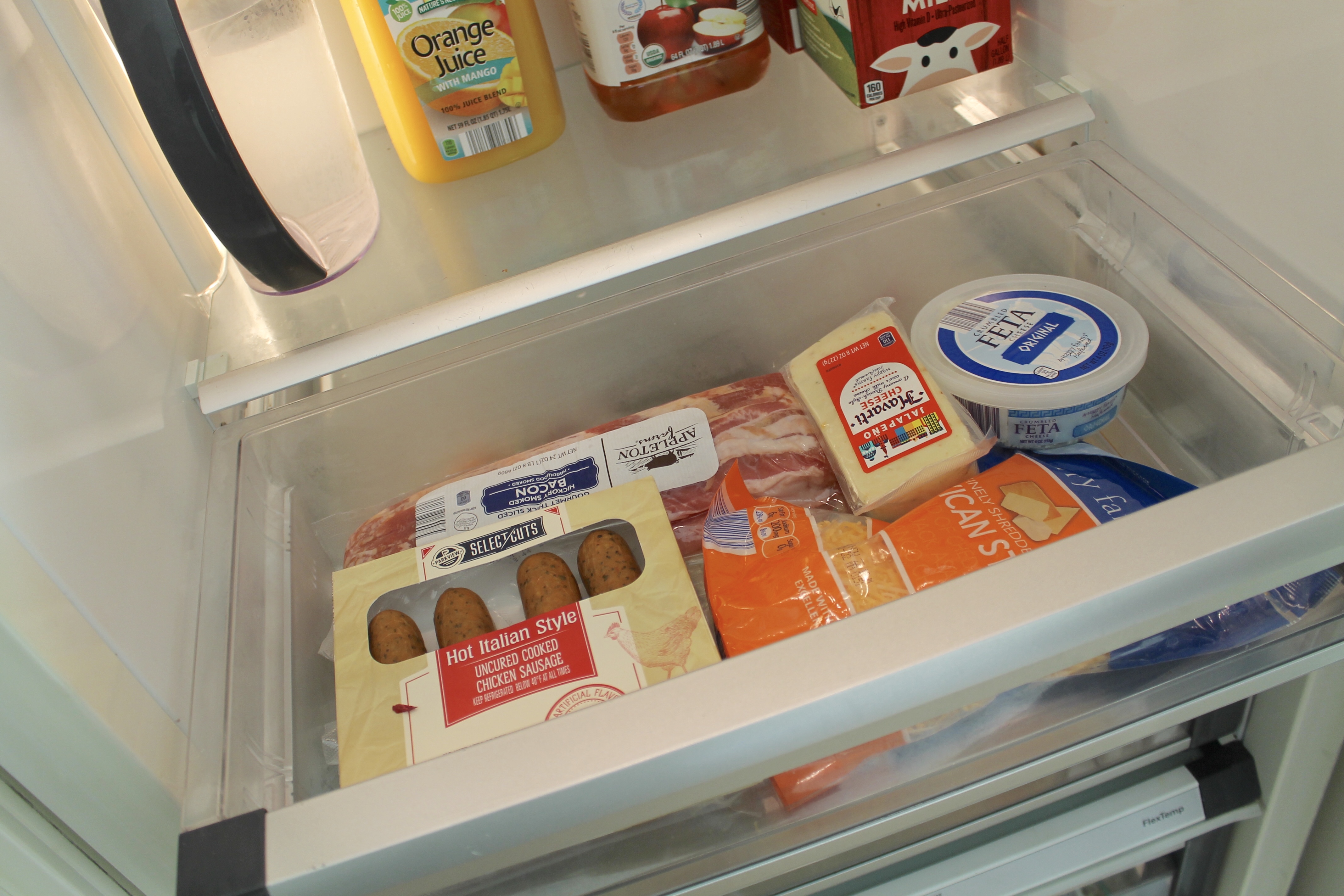 Not extremely deep, but oh so tall which is actually better for viewing all your food. I find that things don’t get lost in here because of this layout.
