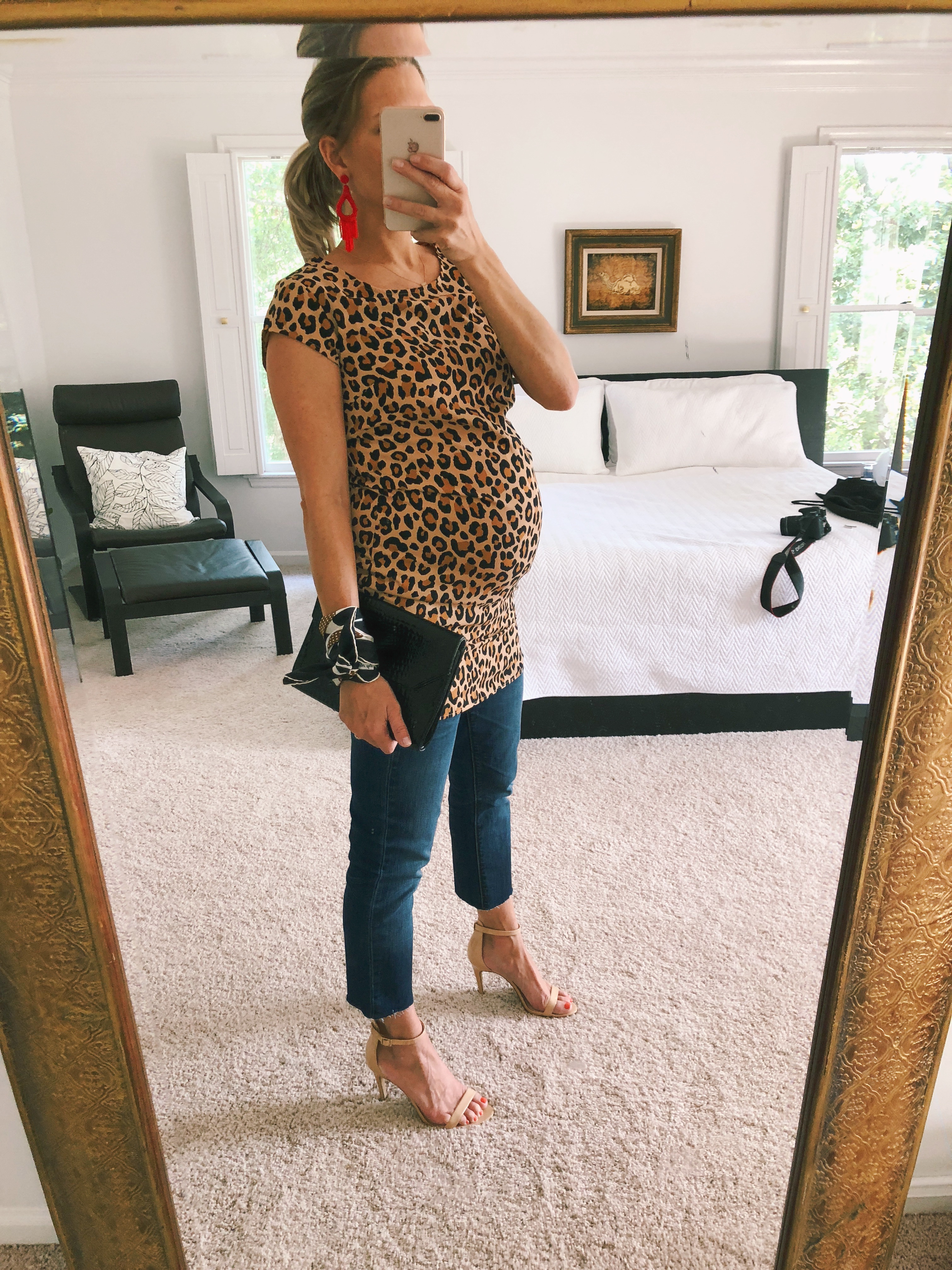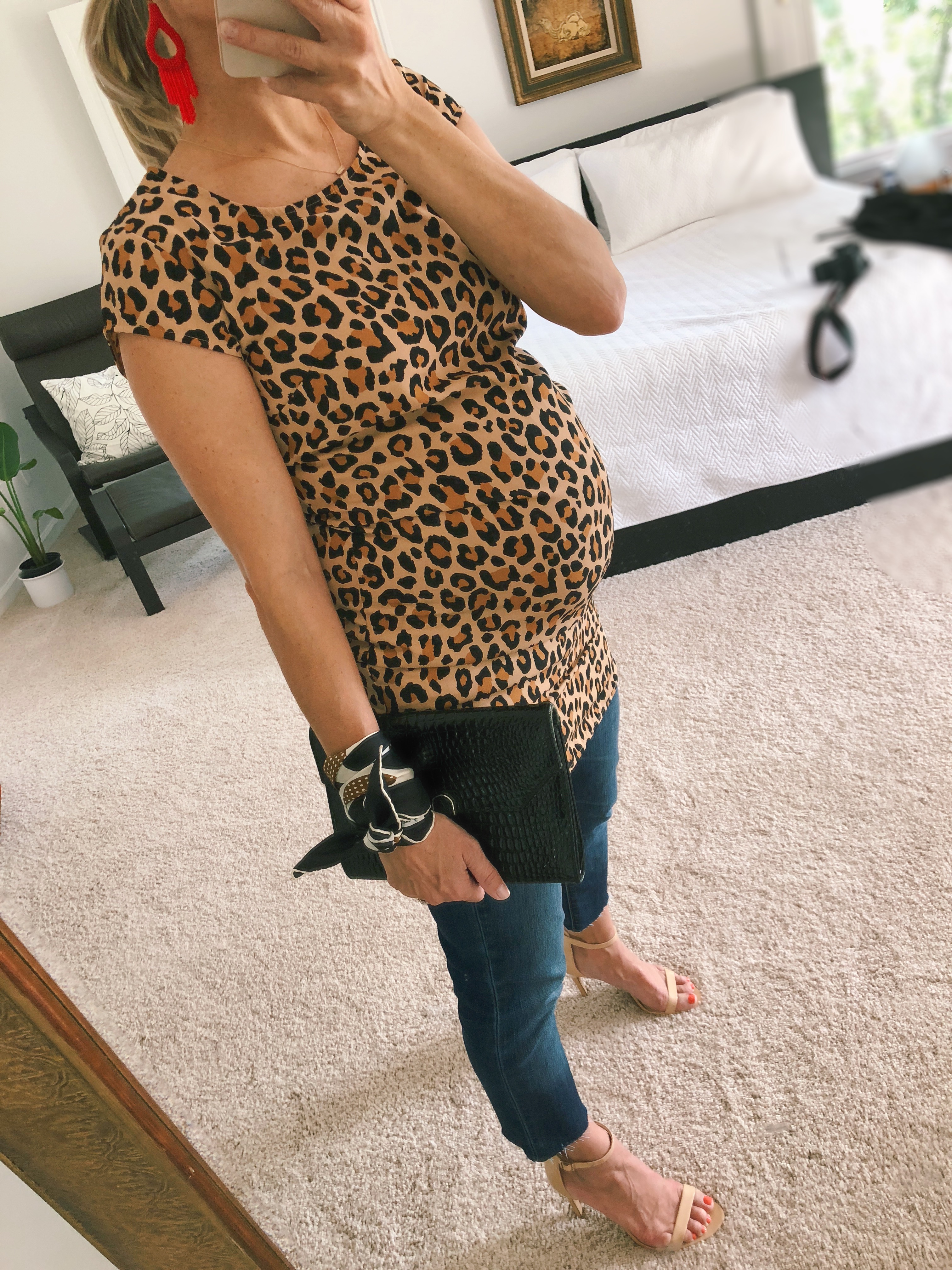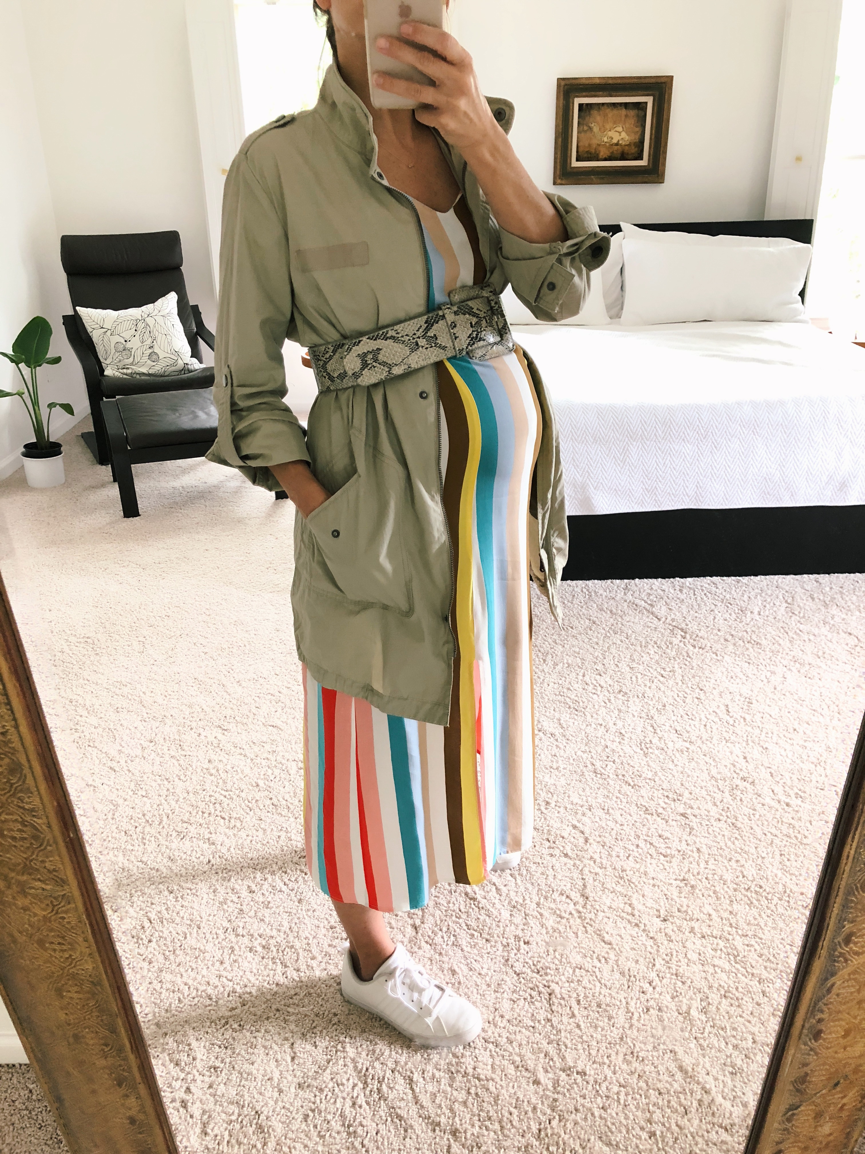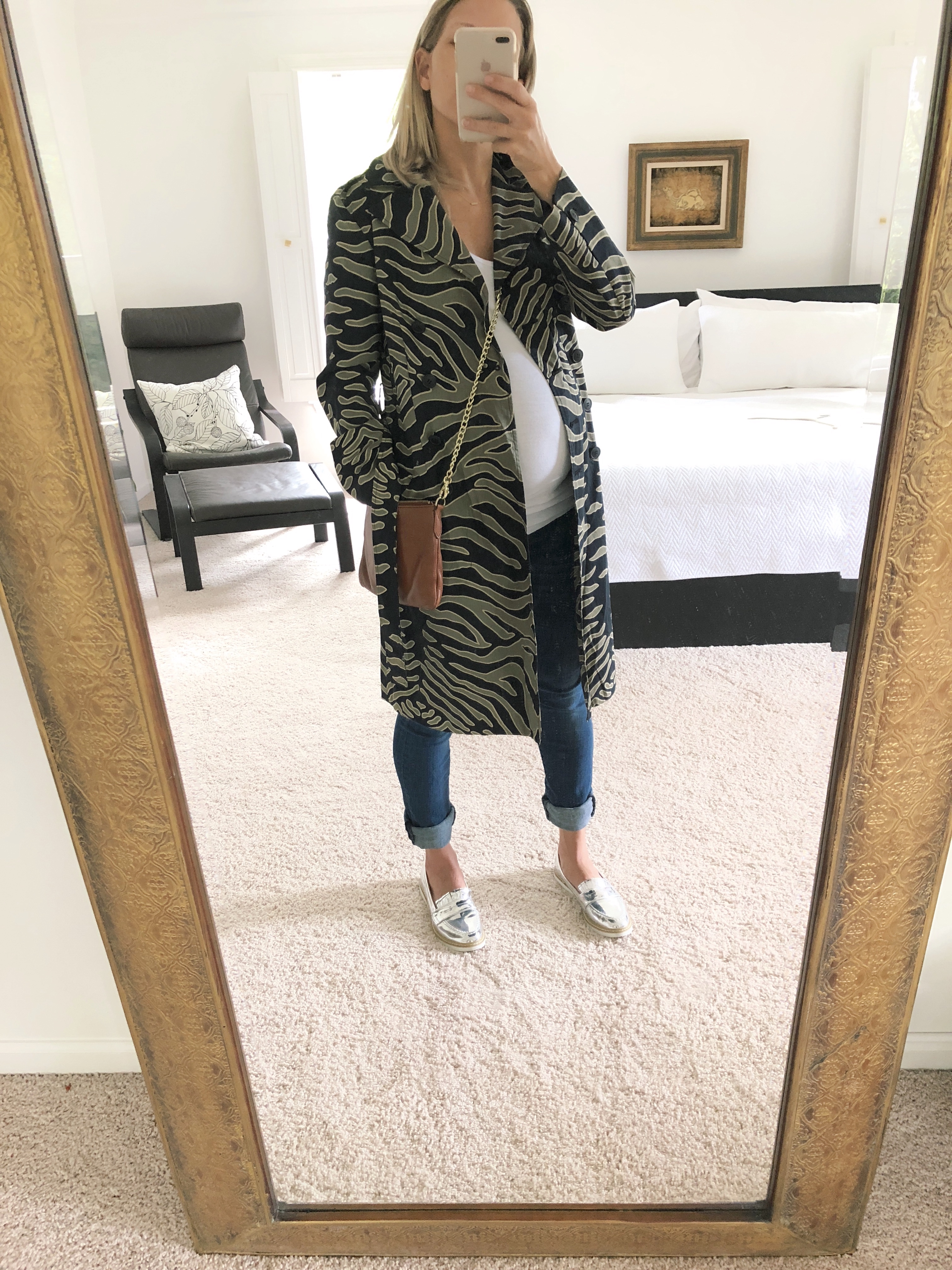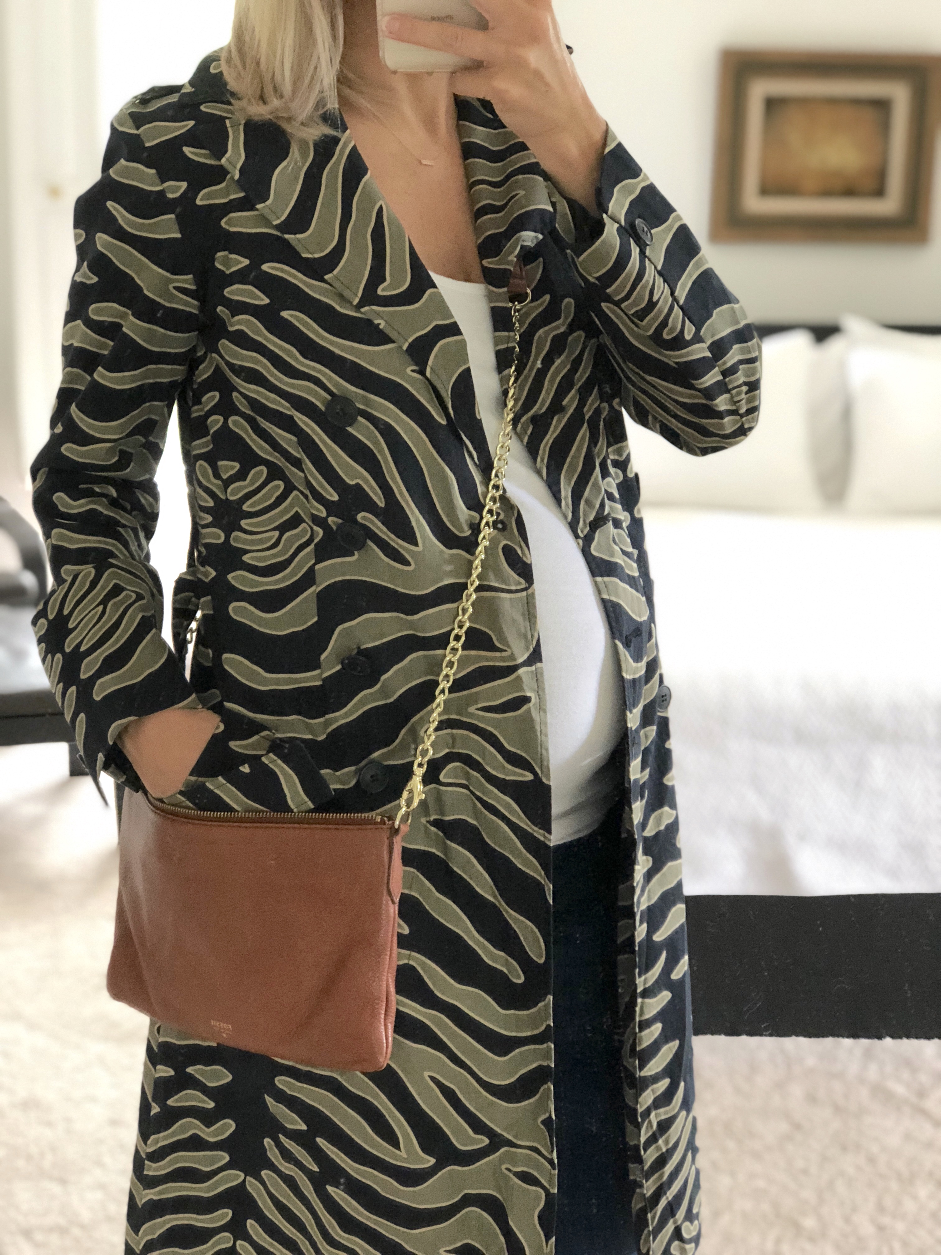 I thrifted this Club Monaco trench in Chicago for $15 and it’s TO DIE FOR. It’s one of those pieces that makes any outfit look good. In this case I threw it on with some se7en maternity jeans and a Kohl’s white tank.