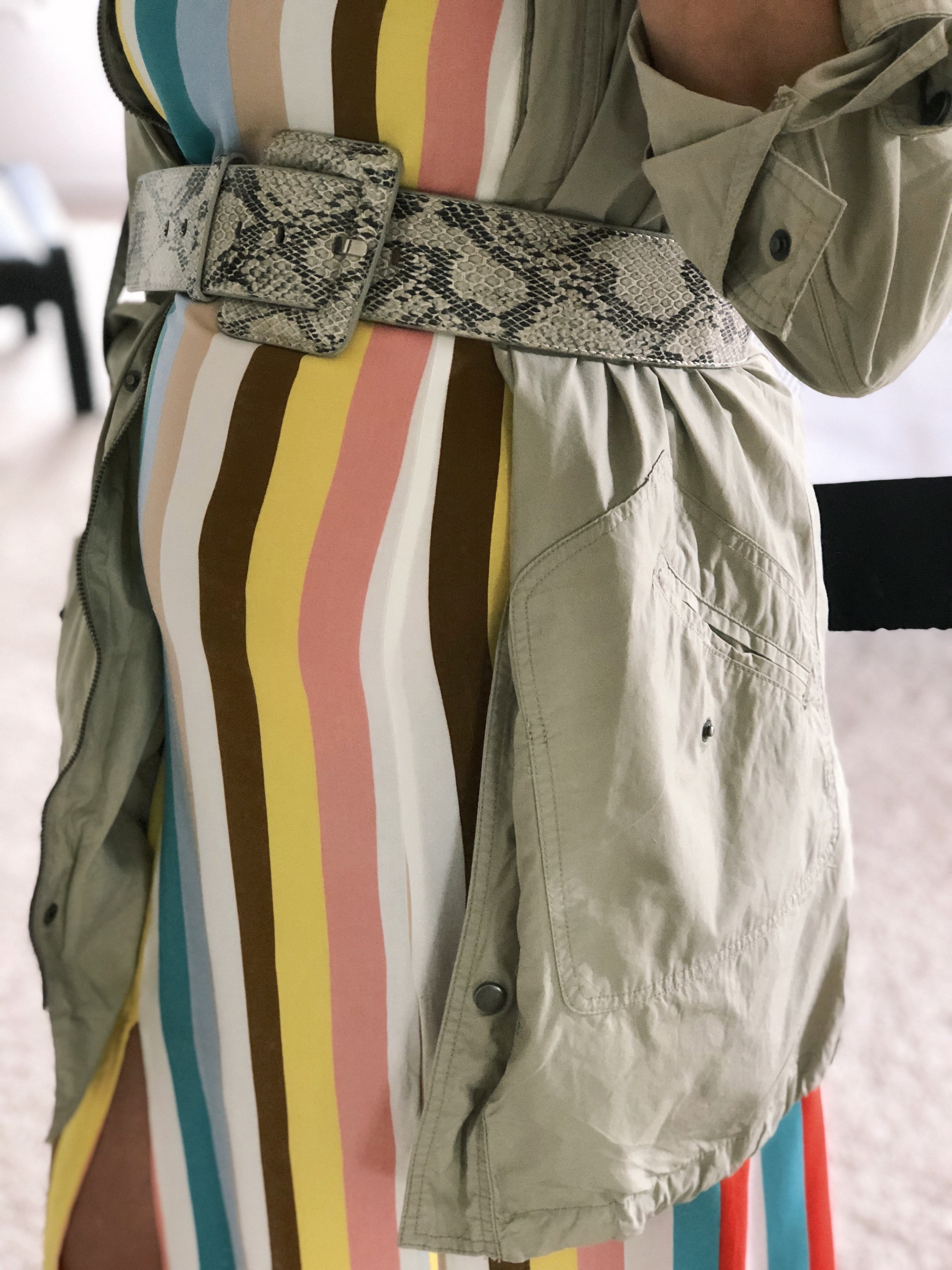 There was a TON of snake skin at NYFW, and it was used in expected ways. That’s how this outfit came about. I fought my urge to pair it with something black or white, and I ended up layering it over this Target dress and jacket. I don’t think I would’ve come up with this had I not been inspired from my fav bloggers, so thank you!