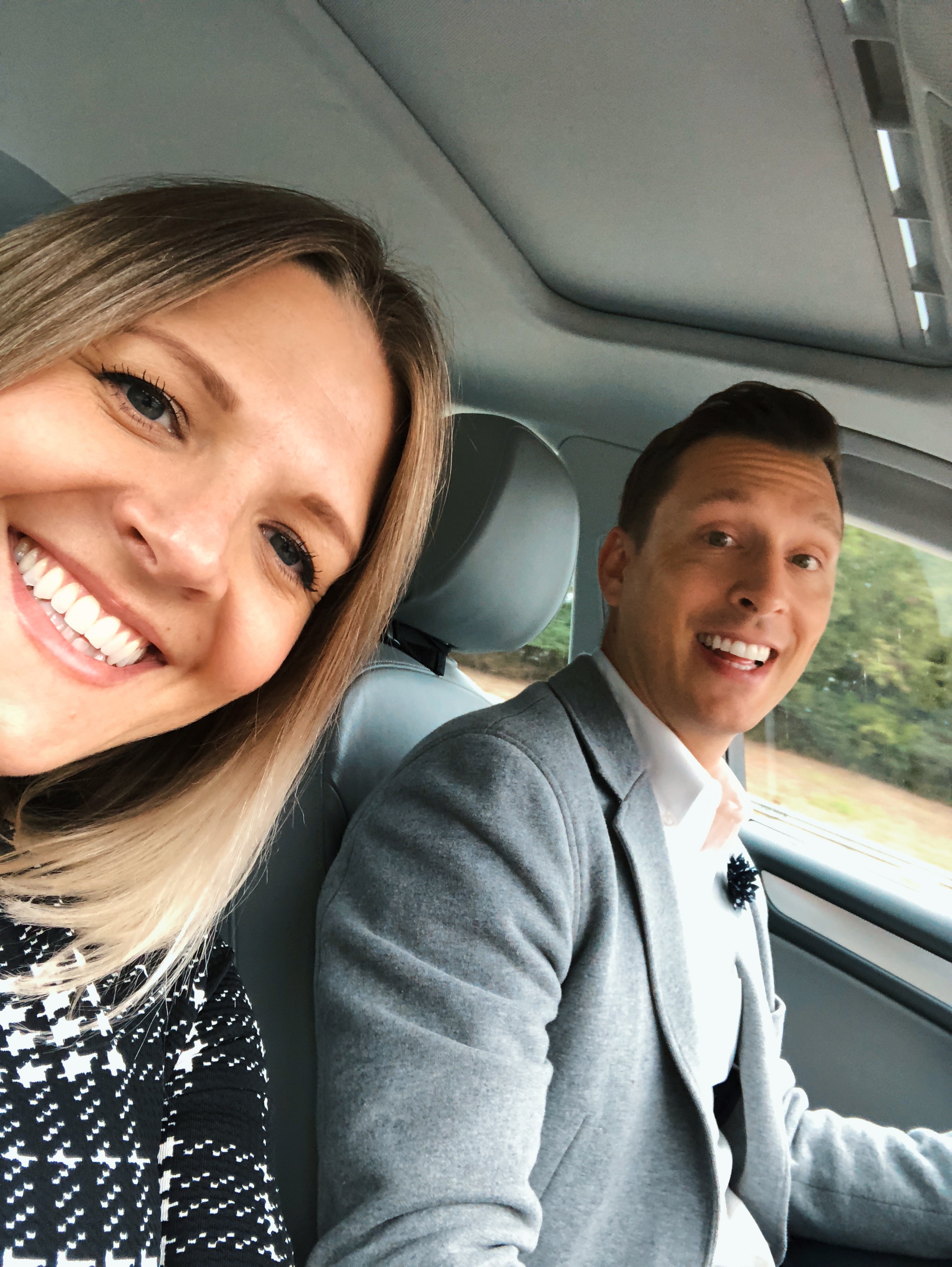 Matt is wearing Hunt Shop too! I used to thrift items for Matt, but after many many rejected finds, I’ve stopped trying. However, this sweatshirt material blazer was one of the VERY few winners. I didn’t even ask him to wear it tonight. He wore the little lapel pin that I bought for him from a local artist at the Huntsville Fashion week finale.