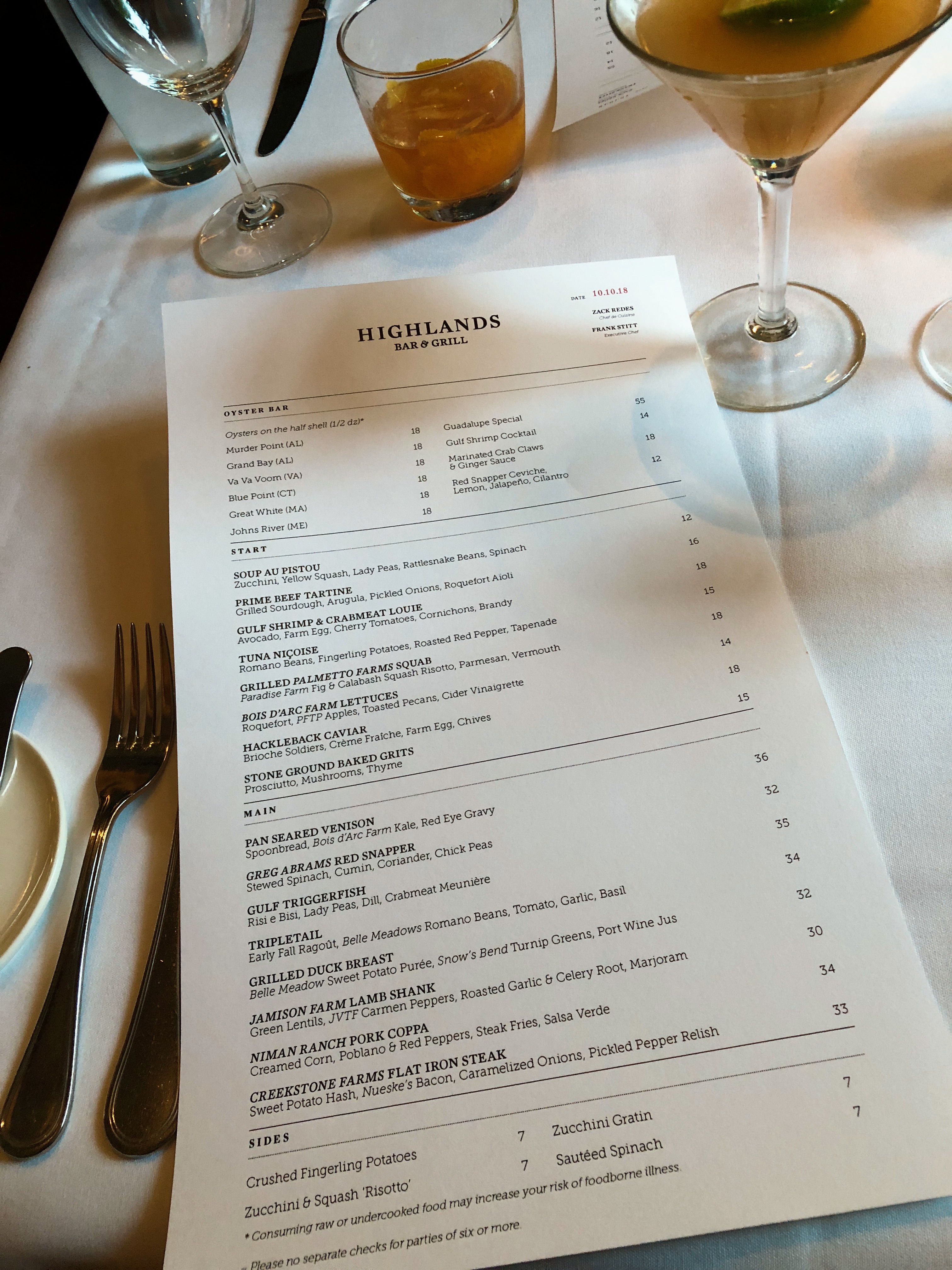 The hub and I have been going on early mid-week dates for the past couple of months. Usually it’s something quick and local. Last night Matt upped the anti with reservations at Highlands Bar & Grill – ya know just the best restaurant in America per the James Beard Foundation. Nbd.